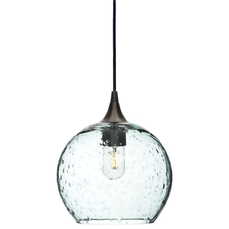 The Lunar Pendant Form No. 768 features a hand-blown recycled glass globe with a four-watt LED filament bulb. The bubbles are added by hand and add to the fixture’s individual nature. It is reminiscent of the moon’s surface and has an effervescent quality to it. This design works well in many different styles of decor including traditional, transitional, beach style or contemporary, and is perfect as a single pendant or displayed in groups.