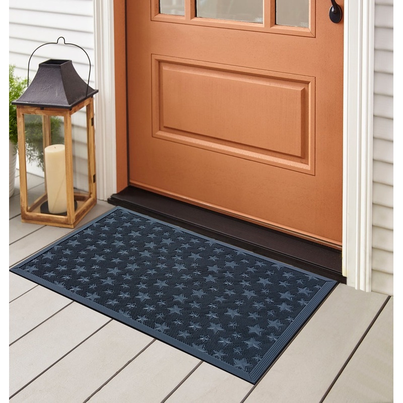 -MATERIAL AND GOOD LUCK BARN STAR DESIGN: The design has been created by an artist and only top-quality rubber has been used. Our home doormat has large number of rubber pin on the surface. it is designed to be durable and sturdy, yet soft. The Low-profile doormat measures 24×36″ and is 1/2″ thick, the door will open easily so forget about curling or getting stuck. The product has cuts to drain the water and snow.