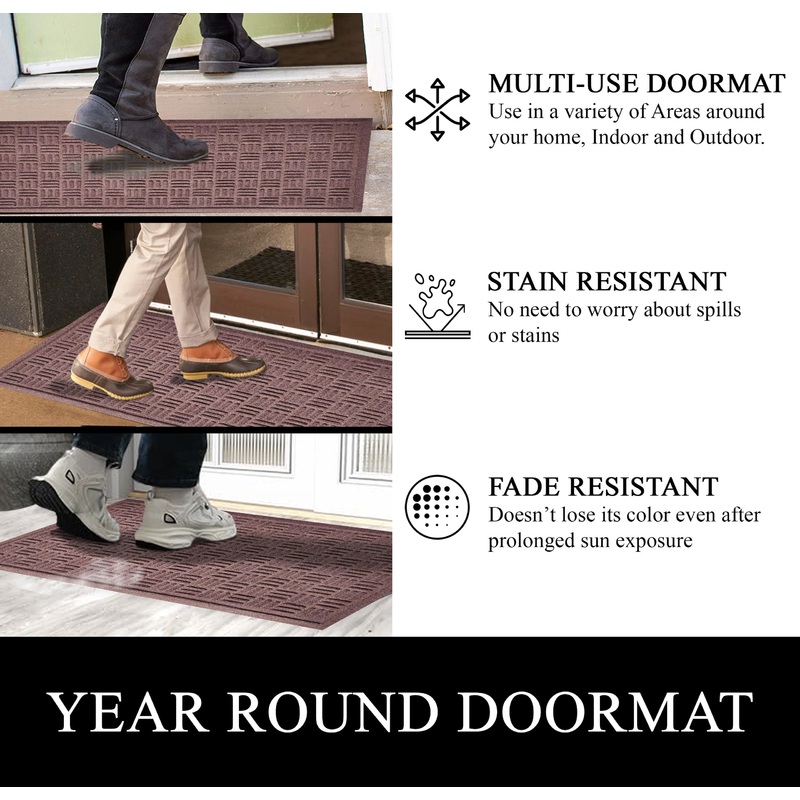 -ALL WEATHER PERFORMANCE WITH SUPERIOR DIRT AND MOISTURE ABSORBING DOOR MAT: These highly absorbing PP door mats are engineered to absorb water, mud, and moisture. The deep grooved poly surface removes dust, pollens and captures allergens keeping your entryways clean and dry, whether it is raining, snowing, or muddy outside, these door mats can handle any weather condition, supplying a reliable barrier against dirt and moisture.