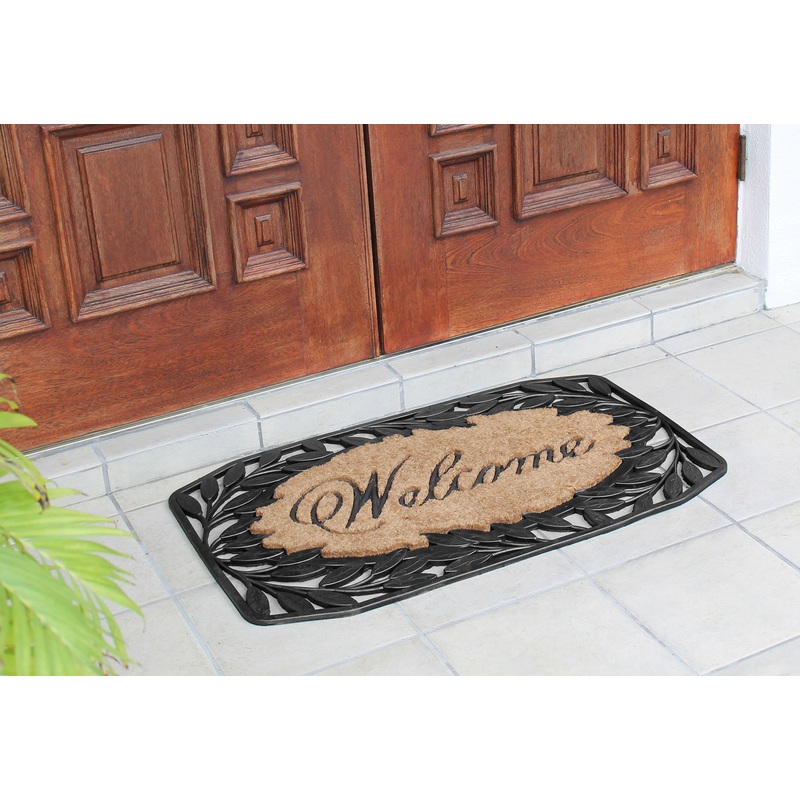 A1HC Welcome Stylish Leaf Border Rubber and Coir Outdoor Doormat, 23″x38″, Black – Contemporary – Doormats – by A1 HOME COLLECTIONS LLC