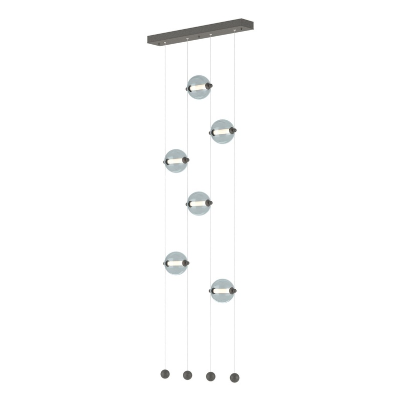 Perfect as a space divider, on either side of a headboard, or simply as a whimsical art installation, the Abacus 6-Light Ceiling-to-Floor LED Pendant features six blown glass globes. With adjustable height cables, the Abacus can be customized to suit any s