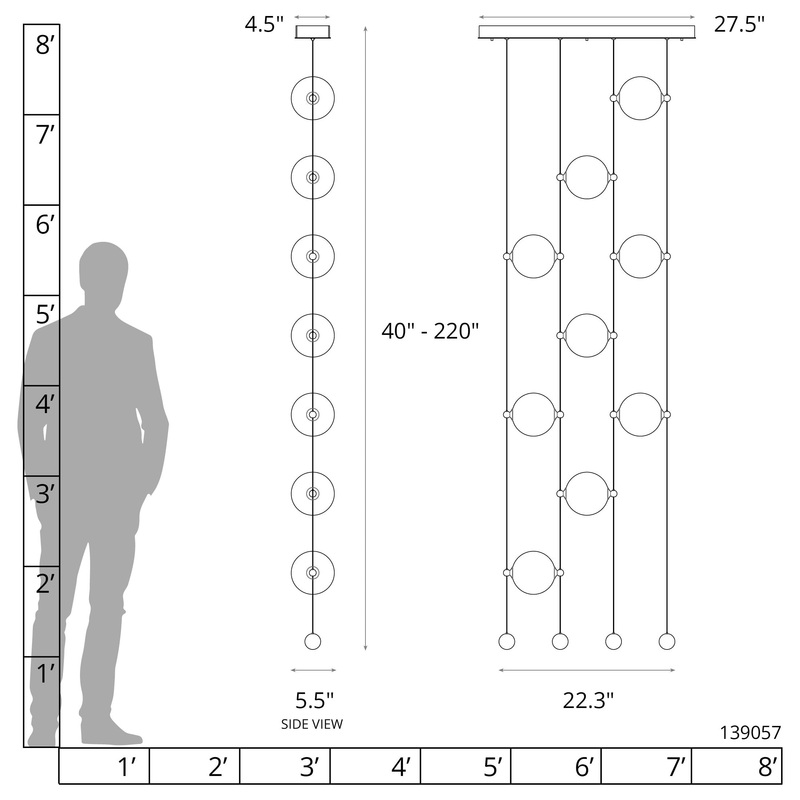 Looking for a room divider, or just a whimsical feature by a headboard or at the entryway? The Abacus 9-Light Ceiling-to-Floor LED Pendant provides both light and experiential art. True to its namesake, the Abacus can be customized by moving any of the nin