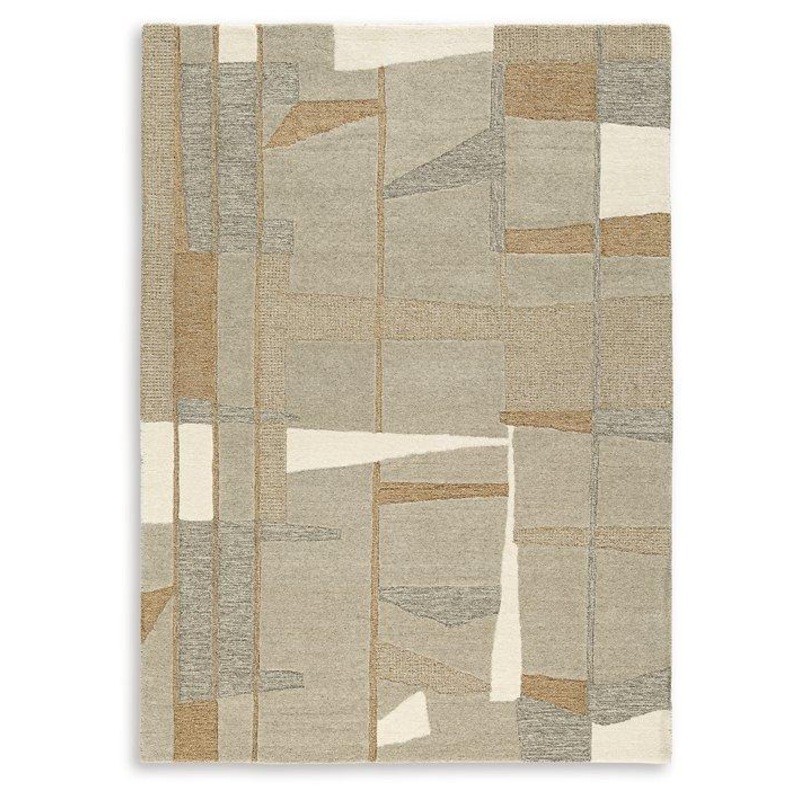 Abstract imagery and a medley of neutral tones give this rug loads of visual interest and a lot of versatility. The hand-tufted pile is rich with feel-good texture. Be it in casual gathering places or formal spaces, it has a look that feels right at home.