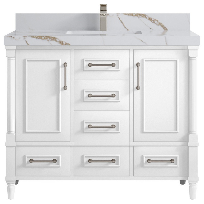 Willow Collection Aberdeen 42 x 22 Single Sink Bath Vanity in White with 2" Straight/ Mitered Edge Calacatta Gold Quartz When it comes to designing your dream bathroom, nothing beats bringing in a piece like the Aberdeen vanity. With its classic, tradition