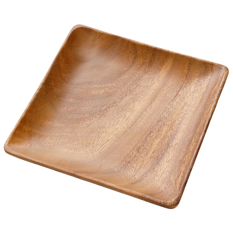 Acacia tableware with a deep color and warm wood grain.