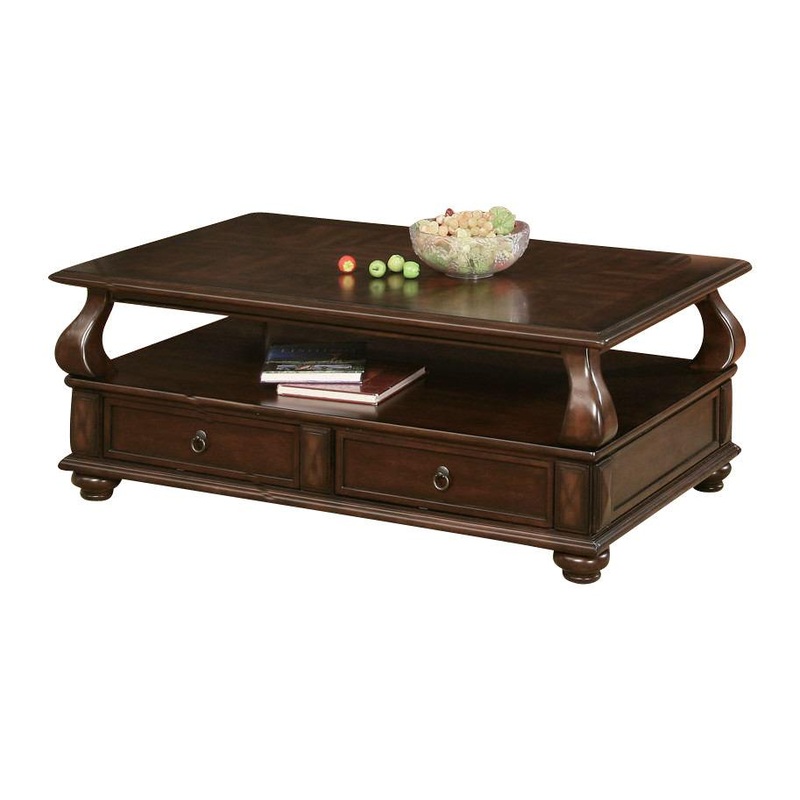 Coffee Table Storage drawers Amado Collection Espresso finish Casual style Finest solid wood and veneers Turned bun feet Minor assembly required Dimensions: 50"L x 32"D x 20"H Coffee Table Storage drawers Amado Collection Espresso finish Casual style Fines