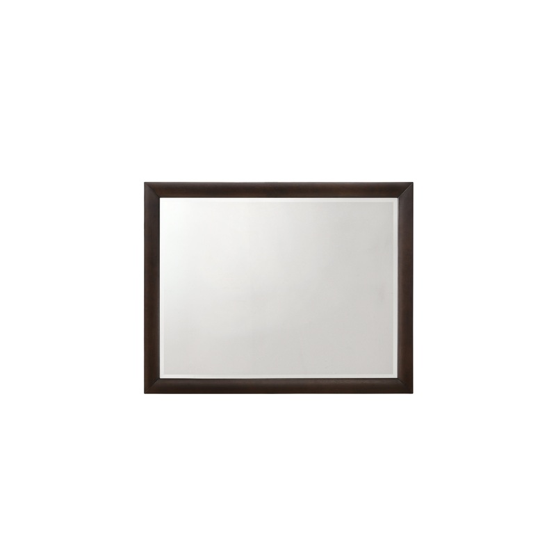The clean lines and transitional look of the Tablita Mirror make it an ideal addition to any bedroom. This contemporary rectangular mirror has a beveled edge and is accented with a handsome wood trim in a rich dark merlot finish. This understated but moder