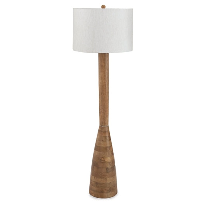 Seamlessly bridge casual craftsmanship and organic beauty with this floor lamp. The modern profile of the sculptural wooden base elevates the relaxed vibe of the rich natural brown finish. Place this lamp in an office corner, or between sofas in a seating area, for a dose of everyday elegance.
