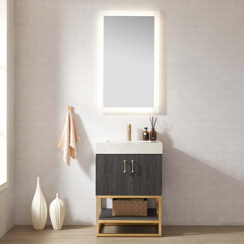 Alistair will add elegance and head-turning style to your modern bathroom space, accompanied with LED mirrors. It combines the warmth of an earthy Plywood and Crafted PVC board cabinet with a vibrant white stone for a contemporary finish. The vanity is ado