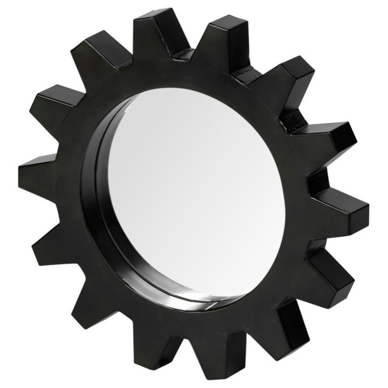 Alloy Black Metal Cog Frame 17″ Round Mirror – Industrial – Wall Mirrors – by HedgeApple