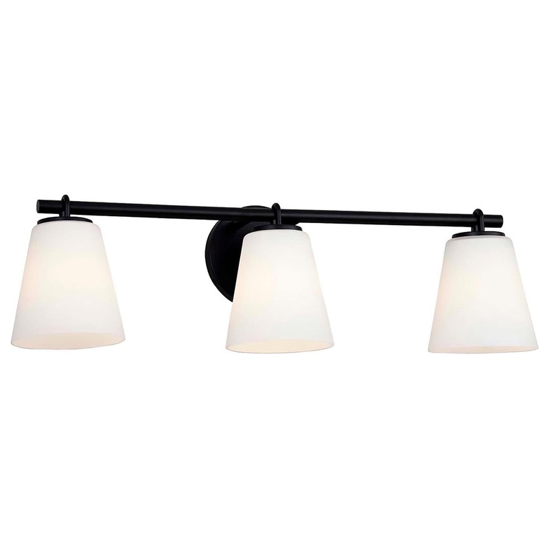 Alpino 3-Light Bath Bar, Opal Glass – Transitional – Bathroom Vanity Lighting – by Justice Design Group LLC-FSN-8033-OPAL-MBLK