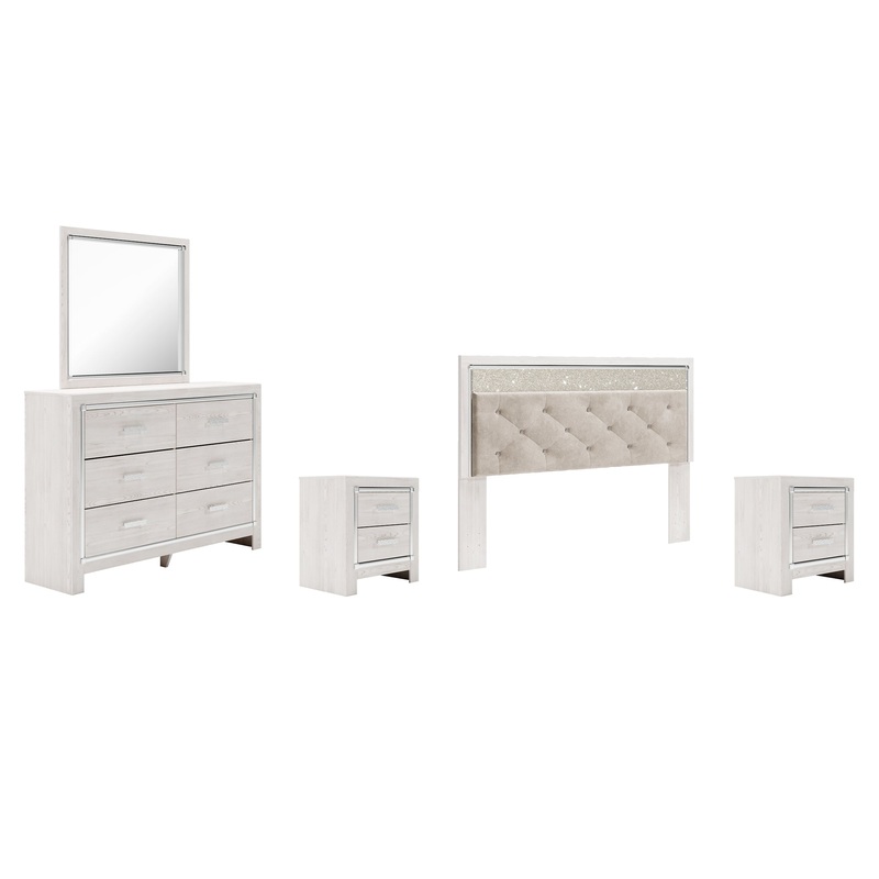 Altyra King Panel Headboard Bed with Mirrored Dresser and 2 Nightstands