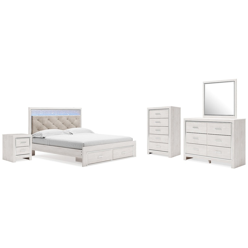 Altyra King Upholstered Storage Bed, Dresser, Mirror, Chest, and Nightstand