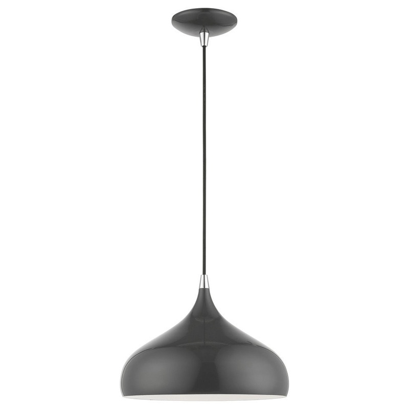 Amador 1 Light Shiny Dark Gray With Polished Chrome Accents Pendant – Modern – Pendant Lighting – by Designer Lighting and Fan