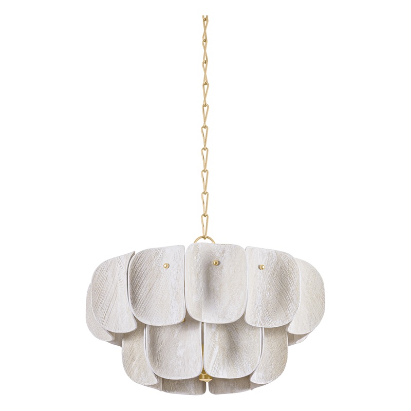 The organic materiality and layered silhouette of the Amalfi chandelier bring a dose of freshness to any space. Made of natural coco fiber, the textural shade panels curve gently outwards like petals. Adding depth and dimension, the tiered shape of the silhouette allows light to escape at each level. The Vintage Gold Leaf finish on the metalwork lends a jewelry-like aesthetic, complementing the beauty of Amalfi.