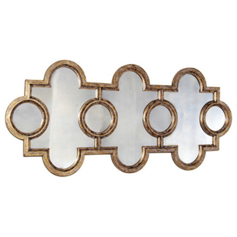 Crafted from solid mindi with a burnished gold leaf finish. Antique mirror. Imported. Product ID85936685Manufactured ByAmbella Home Collection, Inc.Sold ByAmbella Home Collection, Inc.SizeW 99" / D 3" / H 43"MaterialsMindi, Antique MirrorCategoryWall Mirro