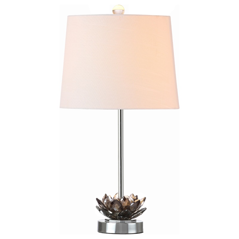 -Add far-flung flair with this smoked crystal lotus flower and chrome base-100% cotton hardback drum shade with a slightly tapered shape