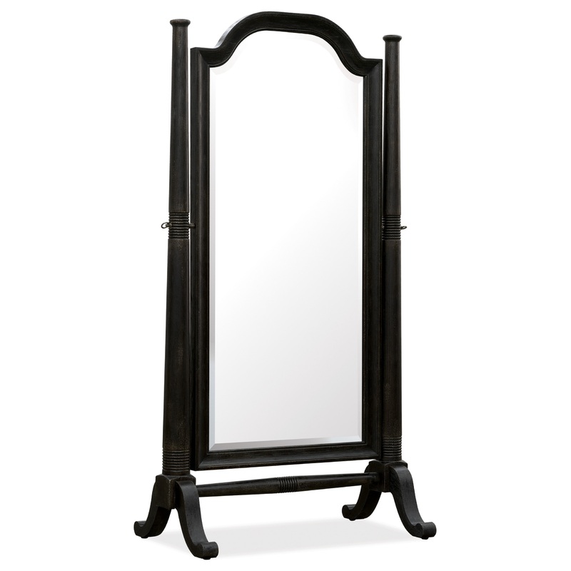 Celebrating the winsome beauty of a simpler time, the Americana Tilting Floor Mirror has beveled glass and carved accents on the posts and stretcher. The Molasses finish over Cathedral Oak Veneers captures the essence of a well-loved heirloom passed down t