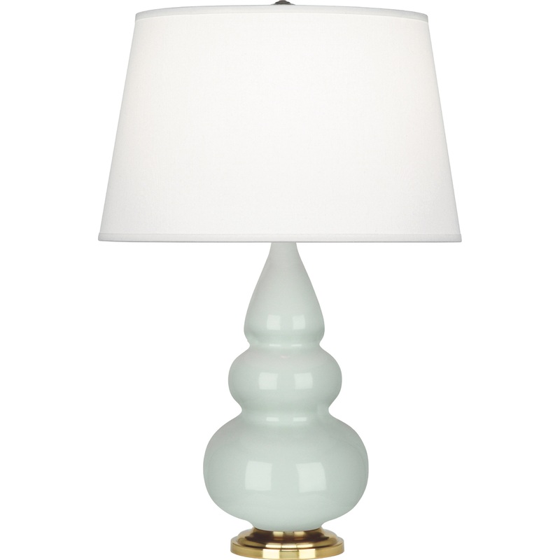 Celadon Small Triple Gourd Contemporary Accent Lamp Features -Number of bulb: 1 -Bulb type: A -Max wattage: 150W -Voltage: 120V -Socket: Medium E26 -Switch: 3-Way Rotary -Switch location: Socket -Finish: Celadon Glazed Ceramic with Antique Natural Brass Ac