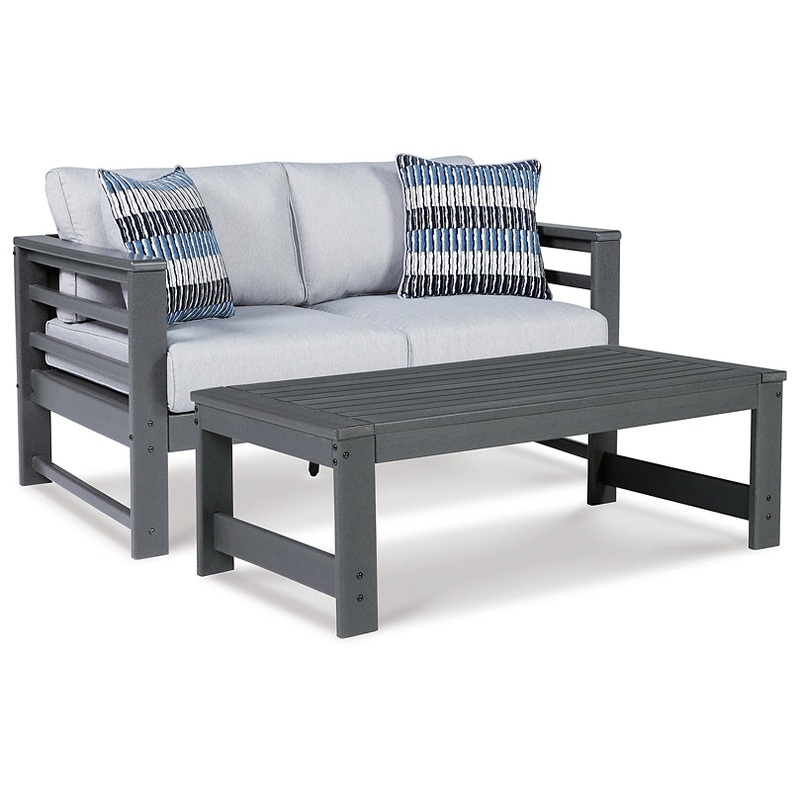 Indulgently comfortable furniture shouldn’t be limited to inside spaces. Create your own outdoor oasis with this seating package. A study in form and function, the trend-right charcoal gray frame is crafted from MEGA TUFF HDPE material for durability and weather resistance. Cushions wrapped in high-performing Nuvella fabric are comfortable and carefree.