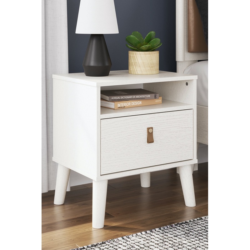 | Details | Made with engineered wood (MDF/particleboard/plywood) and decorative laminate for the right balance of affordability and durability, White painted finish with subtle replicated wood grain, Faux leather drawer pull with brass-tone rivets; light brown and gray options included, 1 smooth-gliding drawer with vinyl-wrapped sides and back, Open cubby, Splay legs, Assembly required |