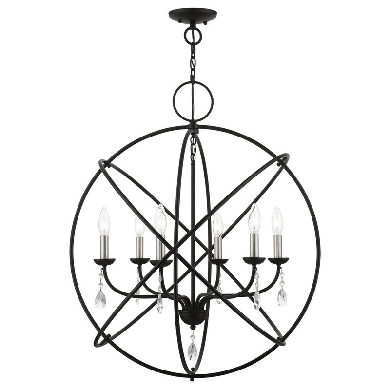 Aria 6 Light Black With Brushed Nickel Finish Candles Globe Pendant Chandelier – Contemporary – Chandeliers – by Designer Lighting and Fan