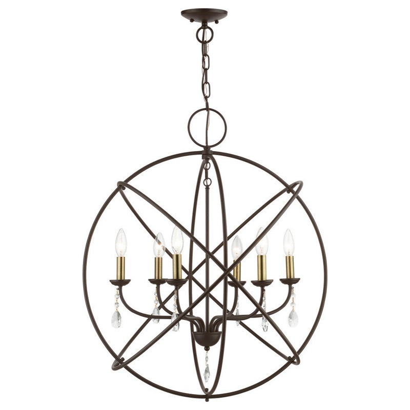 Aria 6 Light Bronze With Antique Brass Finish Candles Globe Pendant Chandelier – Contemporary – Chandeliers – by Buildcom