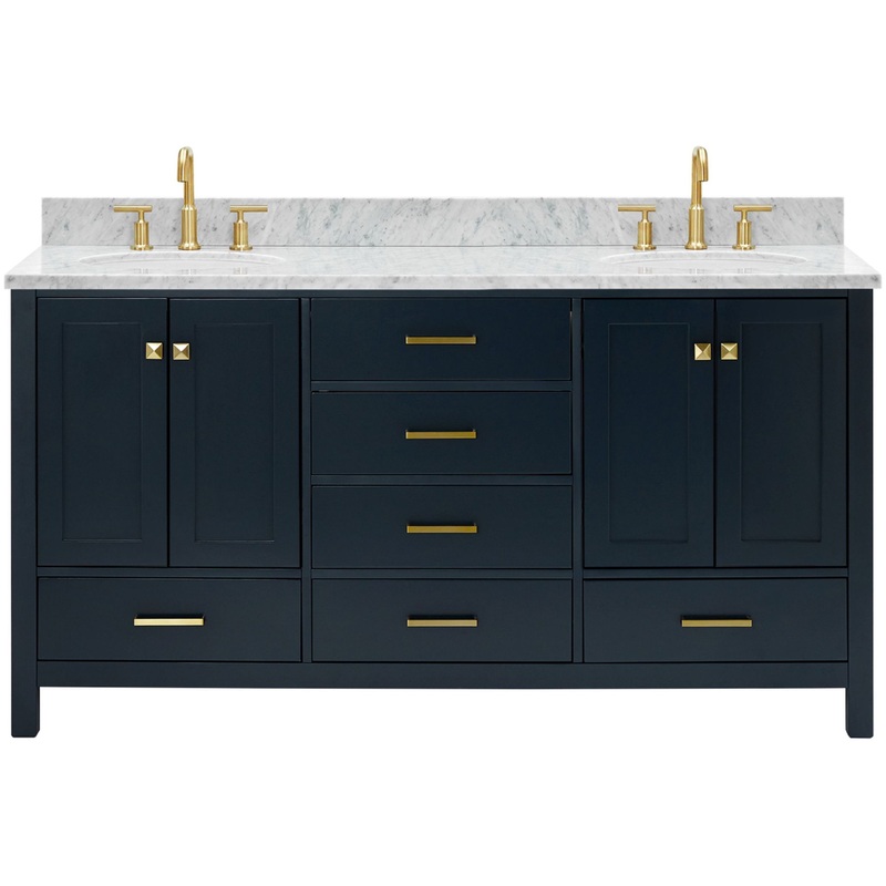 The Cambridge collection from ARIEL Bath is the perfect choice for those looking for a contemporary bathroom vanity that will be the center focal point for your updated bathroom. Featuring shaker style doors and flat panel drawers, this bathroom vanity will be sure to highlight any bathroom environment and create a luxurious spa-like experience in anybodys home. Included Components: Covered under Ariel’s 3 year limited warranty Solid wood and plywood vanity cabinet with 4 doors and 6 drawers Marble vanity top with two sinks and backsplash Faucet is not included and must be purchased separately Cabinet Features: Constructed with solid wood frame and plywood panels providing a lifetime of durability Free standing installation – vanity is seated on the floor with wall anchors, providing a functional design 4 door design provides easy access to storage space 6 full extension drawers with soft-close slides allows for organized storage Soft close drawer slides operate on smooth ball-bearings and prevent drawers from slamming shut Vanity cabinet includes matching decorative hardware Vanity will need to be assembled Vanity Top Features: Marble vanity top includes free standing sinks 3 pre-drilled faucet holes per basin Each sink features its own oval single basin workspace Center drain location provides optimal draining capability Equipped with an overflow drain to help prevent spillage Vanity top includes matching backsplash Cabinet Specifications: Cabinet Width: 66″ (left to right) Cabinet Height: 34-1/2″ (top to bottom) Cabinet Depth: 21-1/2″ (front to back) Number of Doors: 4 Number of Drawers: 6 Vanity Top Specifications: Vanity Top Width: 67″ (left edge to right edge) Vanity Top Depth: 22″ (front edge to back edge) Backsplash Height: 4″ Number of Basins: 2 Sink Dimensions: 8-1/4″H x 19-5/8″W x 16″L Sink Cutout Length: 16-1/4″ (left to right) Sink Cutout Width: 13″ (front to back) Sink Basin Dimensions: 14″ L x 17-13/16″ W x 7″ D Number of Faucet Holes: 3 Faucet Centers: 8″ (distance between the installation holes for the faucet handles)