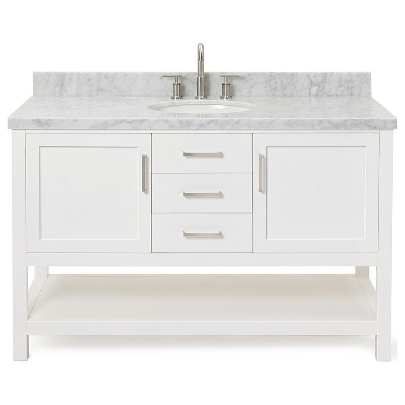 The Bayhill Collection from ARIEL Bath features a sturdy cabinet with a solid wood frame and an open shelf at the bottom to meet all your storage needs. Soft-closing doors and self-closing doors are standard to all ARIEL bath vanities and cabinets. -Covere