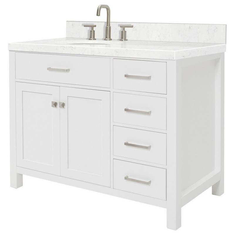 Ariel Bristol 42″ Single Left Oval Sink Bathroom Vanity, Carrara Quartz – Transitional – Bathroom Vanities And Sink Consoles – by Atlas International, Inc.-H042SLCQOVOWHT