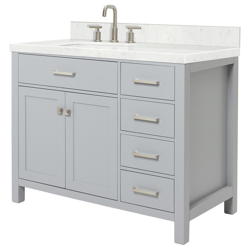 Ariel Bristol 42″ Single Left Rectangle Sink Bathroom Vanity, Carrara Quartz – Transitional – Bathroom Vanities And Sink Consoles – by Atlas International, Inc.-H042SLCQRVOGRY