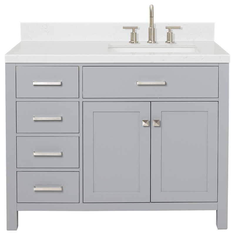 Ariel Bristol 42″ Single Right Rectangle Sink Bathroom Vanity, Carrara Quartz, 42.25 – Transitional – Bathroom Vanities And Sink Consoles – by Atlas International, Inc.