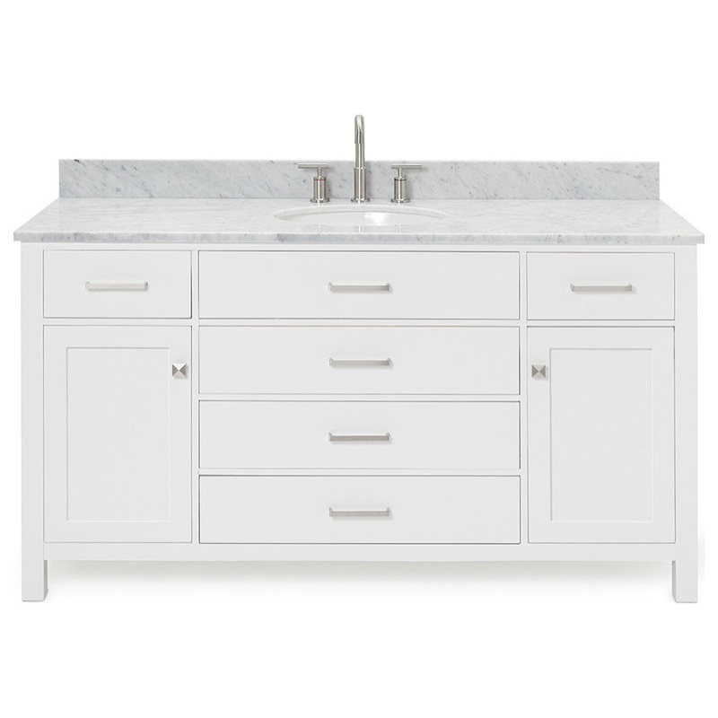 Elegance and simplicity keynote the versatile Bristol collection. With countertops made from high quality heat and scratch resistant Italian Carrara marble, this vanity is sure to satisfy even the most discerning tastes. Clean lines and square shapes are accented by the modern handles that make the Bristol collection a perfect choice for your bathroom decor.