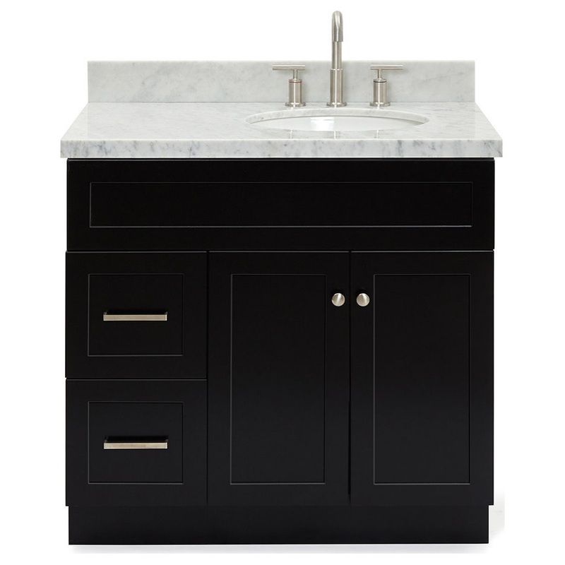 Ariel Hamlet 37″ Right Oval Sink Bath Vanity Carrara Marble – Transitional – Bathroom Vanities And Sink Consoles – by Atlas International, Inc.-F037SRCWOVOBLK
