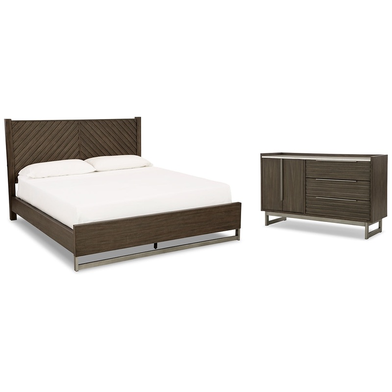 Clean lines lend sophistication and structure to this bedroom package. A complex rich grayish brown finish creates visual interest and adds to the contemporary vibe.