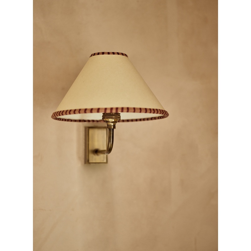- A petite lampshadein understated card- Warm light diffuses gently through the subtle texture- Finished with a painterly pink and plum trim in 100% cotton- Interlined with 100% natural toned cotton - Features an easy-to-use antiqued brass candle clip fram