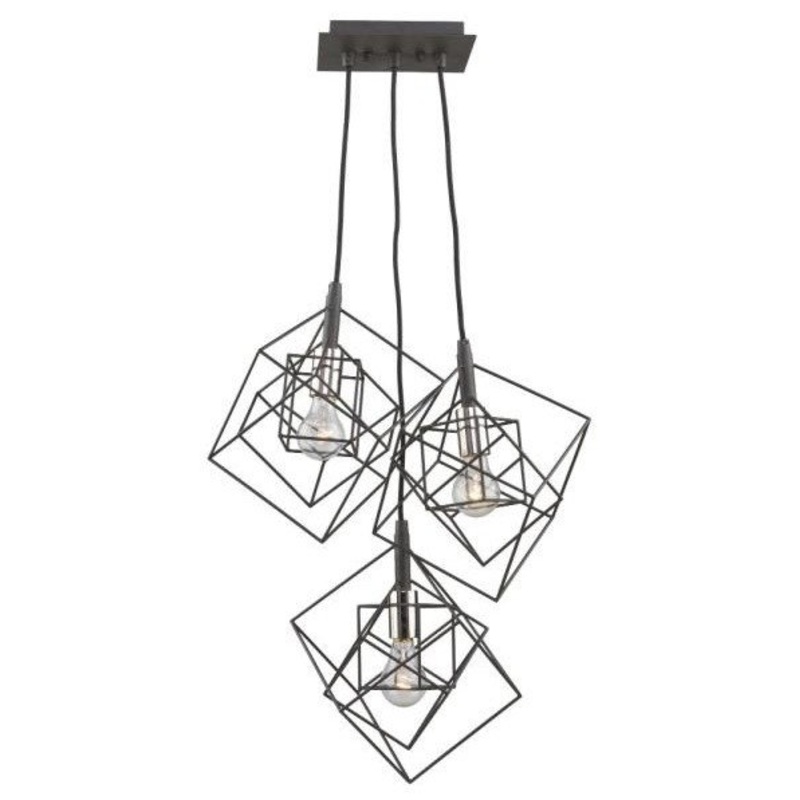 Geometric in design the Artistry collection is meets the transitional type d+cor criteria. The outer frame is matte black and the interior is plated in harvest brass. Triple pendant shown. (Also available with polished nickel interior) Limited Foyer/Dining Room/Kitchen Canopy Included: Yes Sloped Ceiling Adaptable: Yes Canopy Diameter: 8 x 5.5 x 1 Dimable: YesArtistry Three Light Chandelier Matte Black/Polished nickel *UL Approved: YES *Energy Star Qualified: n/a *ADA Certified: n/a *Number of Lights: Lamp: 3-*Wattage:100w Medium Base bulb(s) *Bulb Included:No *Bulb Type:Medium Base *Finish Type:Matte Black/Polished nickel