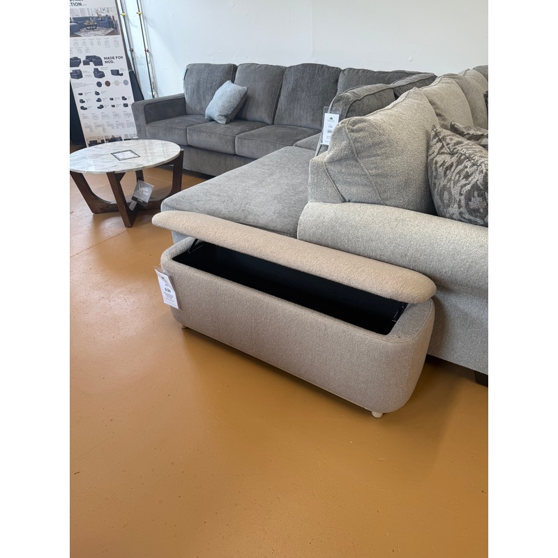 This Maribo ottoman comes with plenty of storage and an elegant sandstone-colored boucl fabric. No defects.