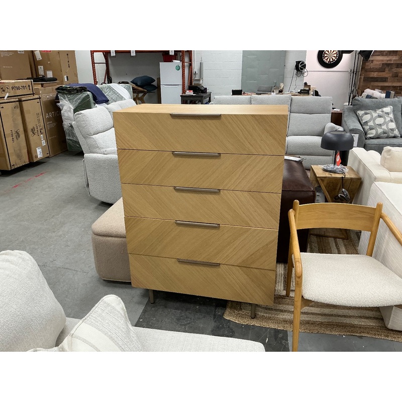 This is a Nera Chest in Oak wood. Herringbone pattern with 5 drawers. No defects of any kind.