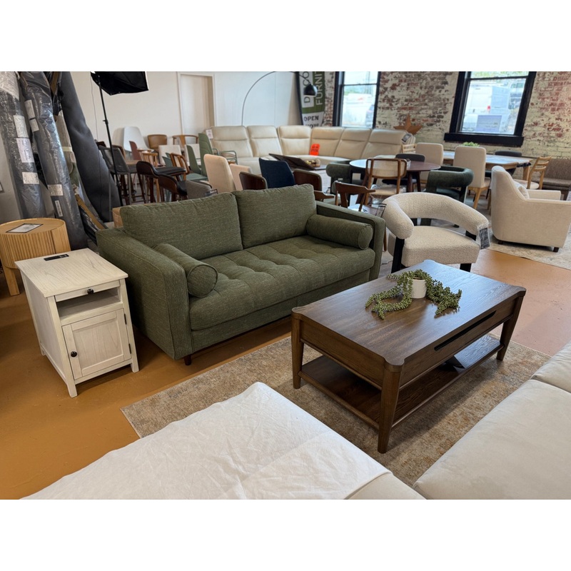This is an Article Sven 72″ Tufted Loveseat with Fir Green fabric. It’s in perfect and brand new condition with no defects.