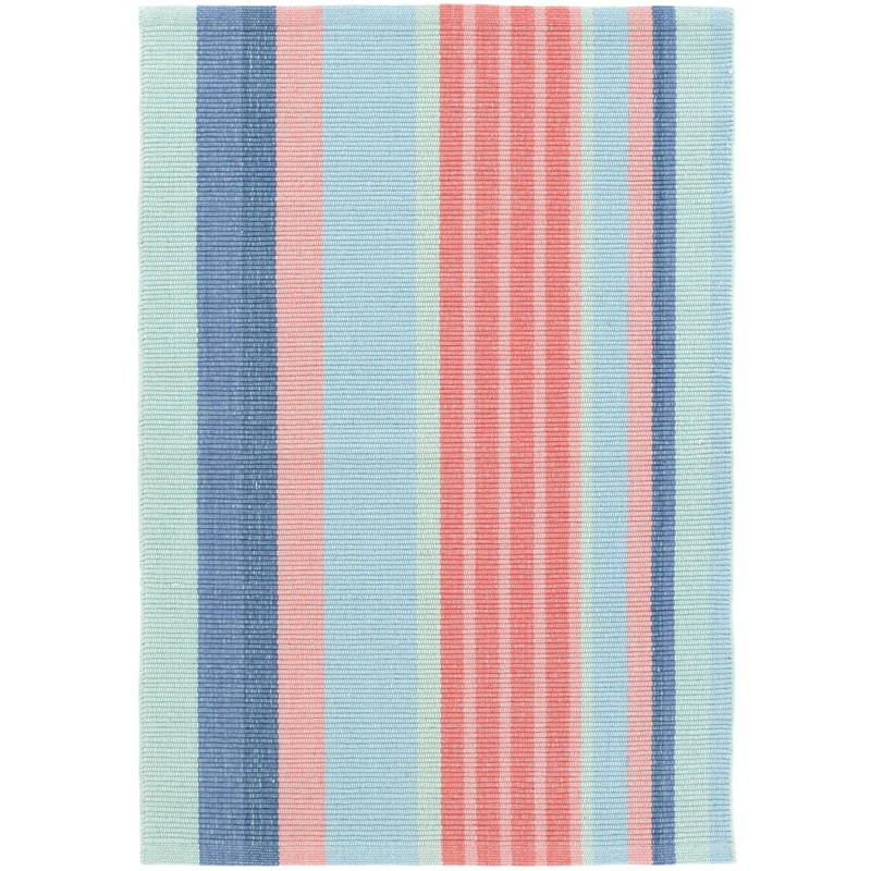 Sun-drenched hues of corals, sky, and grass intersperse with variegated coastal blue deck stripes in this low profile rug. Soft underfoot, reversible and easy on the pocket, our best-selling flatweave cotton rugs are renowned for their versatility, affordability, and durable construction.