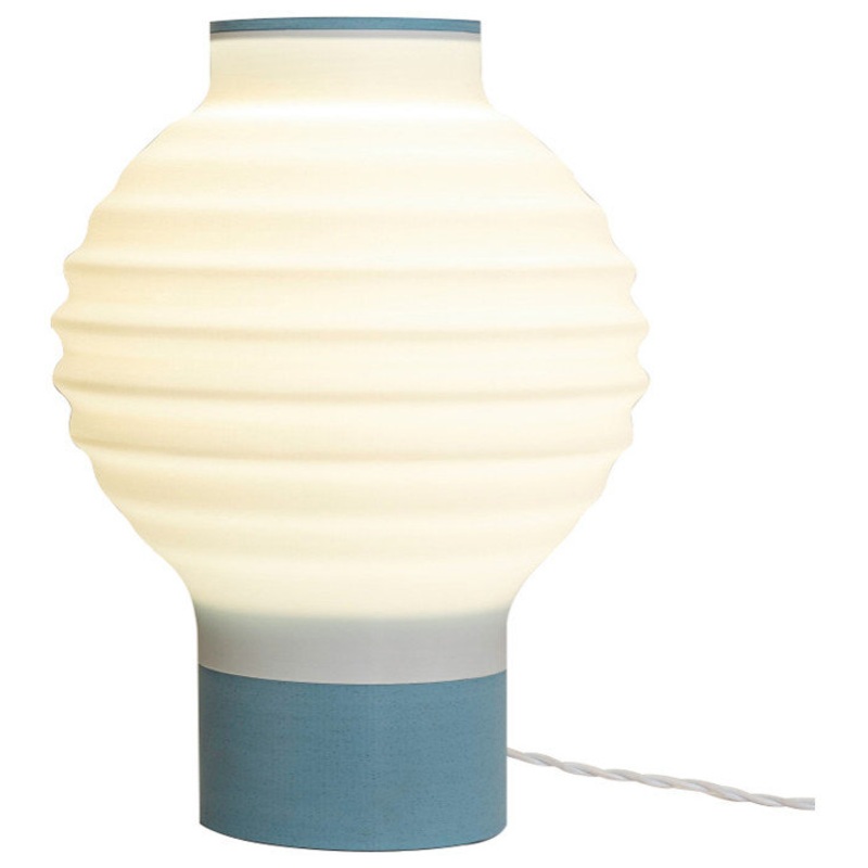 -This minimalist blue cylindrical base supports a spherical bohemian white PLA filament shade and creates a Chinese lantern feel