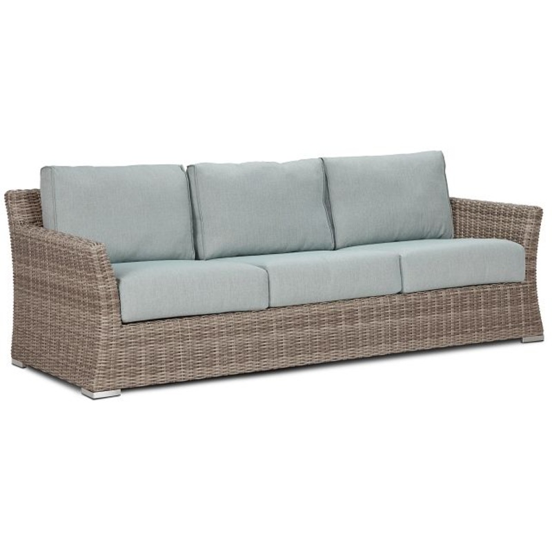 Model: 9712621Dimensions: 92.88w x 31.75h x 33.75lBack height: 10.5All features: removable cover rust resistant uv resistant water resistant weather resistantBack cushion thickness: 5.5Seat cushion core material: foamLeg material: aluminumType of back cush