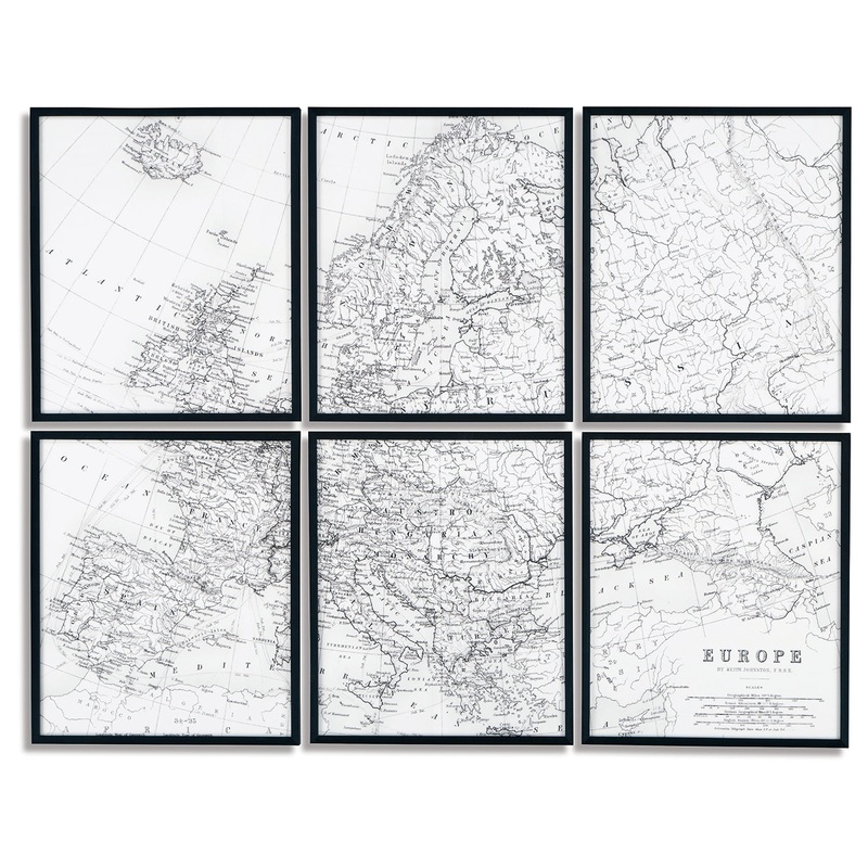 For the well-traveled seeker of curated contemporary style, this wall art set is a must-have. A sprawling map of Europe stretches across six framed prints. The set's black and white design lets the details bring the drama, creating a tastefully eye-catchin