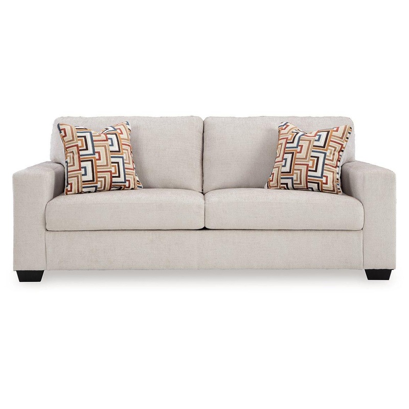 Looking to make a simply chic statement with color? Liven up your living room with this sofa. Its trend-right light neutral upholstery is a perfect blank canvas for adding pops of color. Bold and eclectic accent pillows complete the look. Pairing posh style with everyday comfort, this piece is a welcome addition to contemporary spaces.