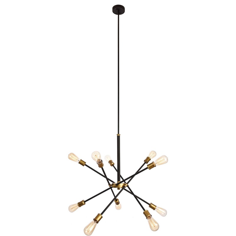 Axel Collection Chandelier, 27.2″x32.5″, 10-Light, Black and Brass Finish – Midcentury – Chandeliers – by Buildcom