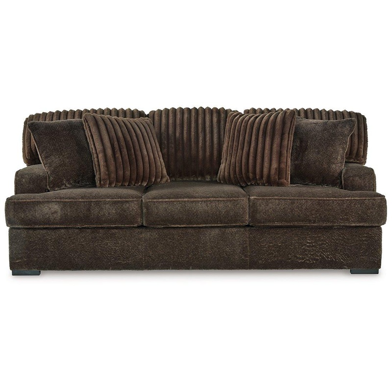 If youre looking for a blend of extraordinary comfort and contemporary style, this extra-roomy sofa stacks up beautifully. Its a modern yet ultra-soft lookmade all the more appealing by plush textured and on-trend corduroy cushions that feel as great as they look. The rich chocolate color is simply smart and practical. And pretty sweet.
