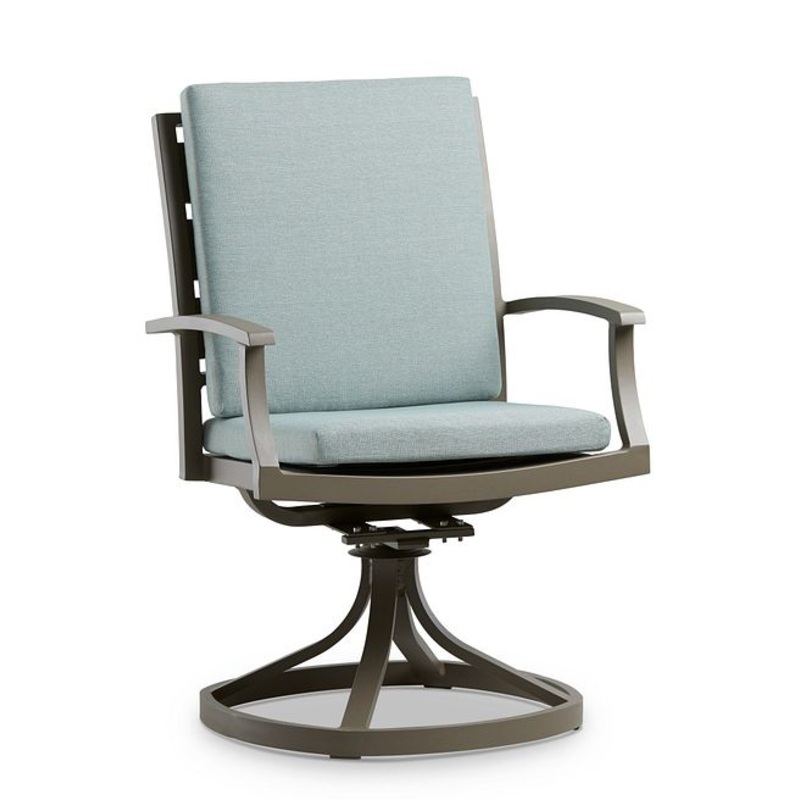 Model: 9729709Seat cushion tie backs: yesAll features: reversible cushions rust resistant uv resistant water resistant weather resistantSeat cushion core material: foamLeg color: dark grayLeg material: aluminumNumber of seat cushions: 4Sustainability: made