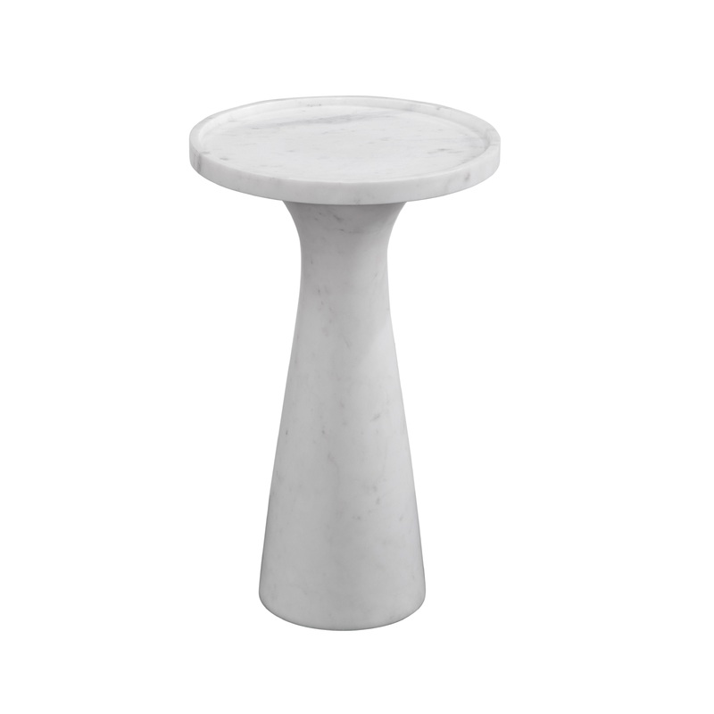 The Baird Accent Table features modern minimalist styling with clean lines crafted from solid white Indian marble and a tray style tabletop.Product FeaturesFeatures modern minimalistic stylingThis pedestal style accent table features a large round, tray st