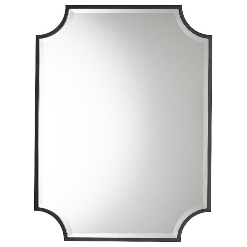 Introduce an aura of bold refinement to your interior with the stunning Parcenet wall mirror. Made in China, this avantgarde piece is comprised of a minimalist metalframe fitted with a large central mirror. Scalloped corners lend an eye-catching silhouette while complementing the clean lines of the piece. The Parcenet will arrive fully assembled and is wall mountable. A distinguished piece of modern craftsmanship, the Parcenet wall mirror serves as an elegant accent.